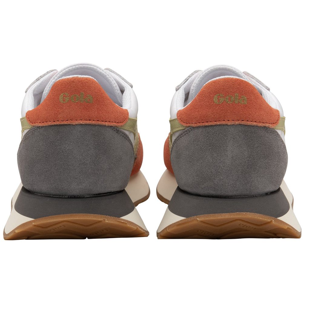 Modern vintage meets wonderment with Gola Indiana, an angled exaggerated sole jogger. It’s fair to say that this is no ordinary looking women’s jogger with its futuristic form, a heritage inspired upper sits atop the angled EVA midsole to give counterposed beauty. Executed in a fabulous mix of white with ash grey, lemon and orange, this is a striking trainer statement.