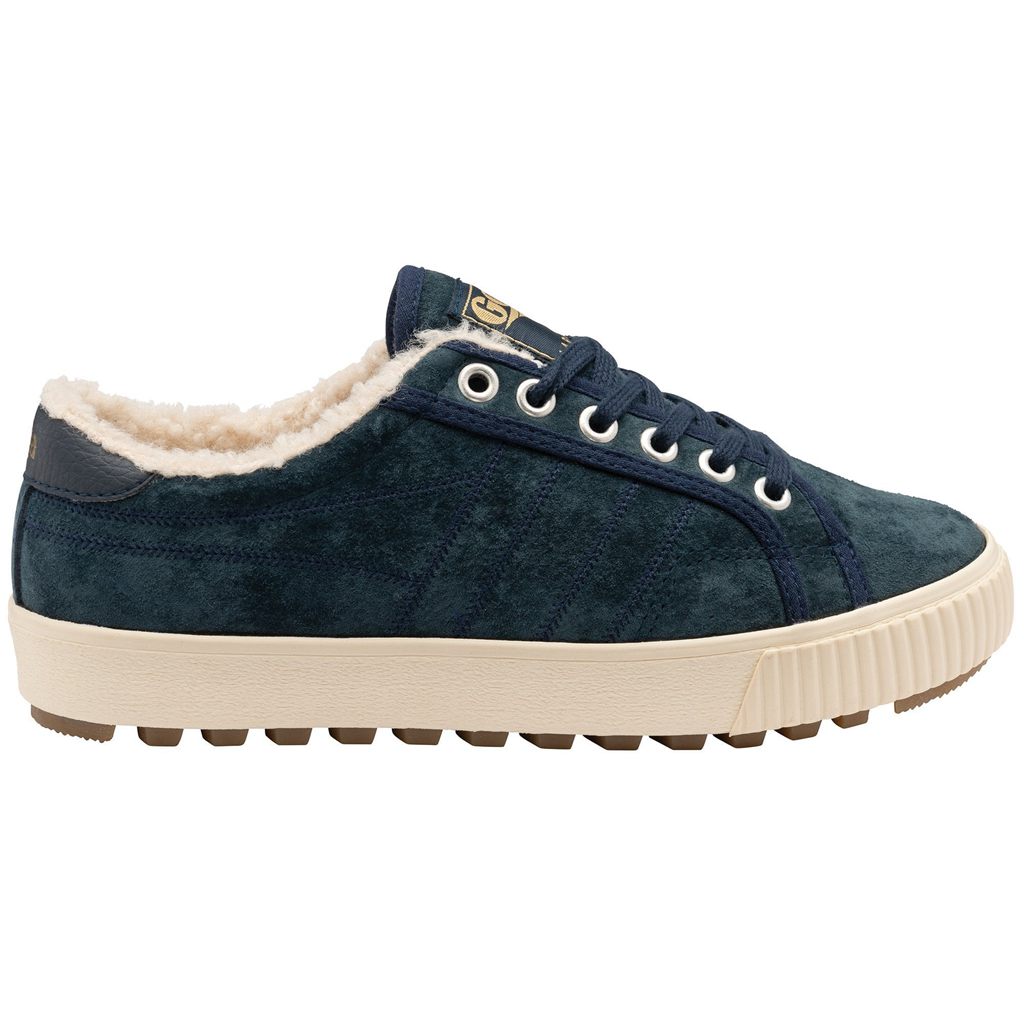 The legendary Gola Mark Cox tennis plimsoll silhouette gets a cleated look to ramp up its seasonal appeal. Combined with a plush navy suede upper and a snug fleece lining, Gola Nordic for women is a transitional wardrobe essential; giving a perfect go-to sneaker option when it looks a little chilly outside and you need a sneaker choice that’s versatile, on-trend and comfortable.