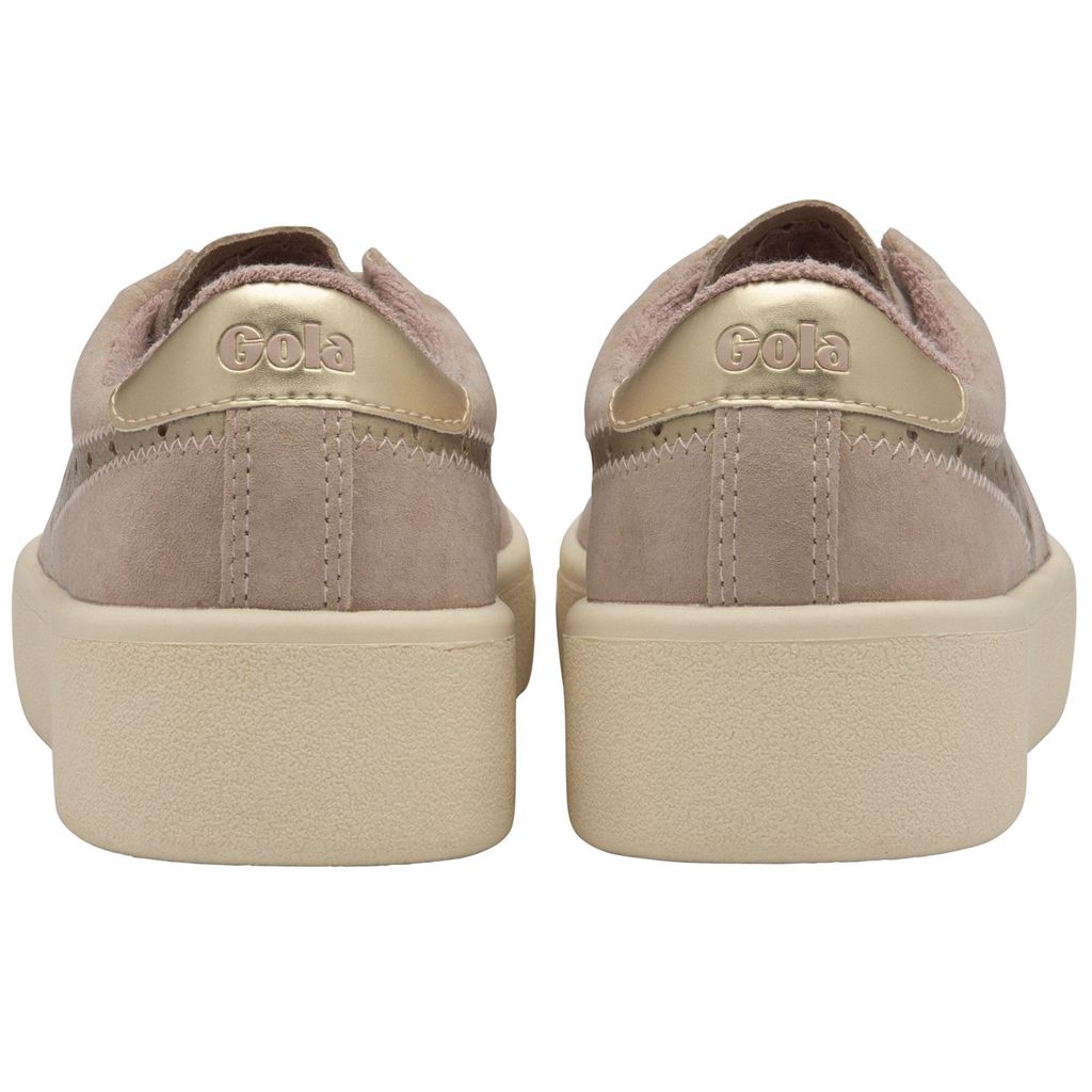 Gola’s Super Court Metallic sneaker for women features smooth reverse seams, punch detailing to the side panels and soft gold Gola wingflash branding which complements the blossom pink suede upper perfectly. All nestled on an off white elevated cup sole, this is an uber feminine sneaker choice which will be a welcome asset to any woman’s wardrobe.