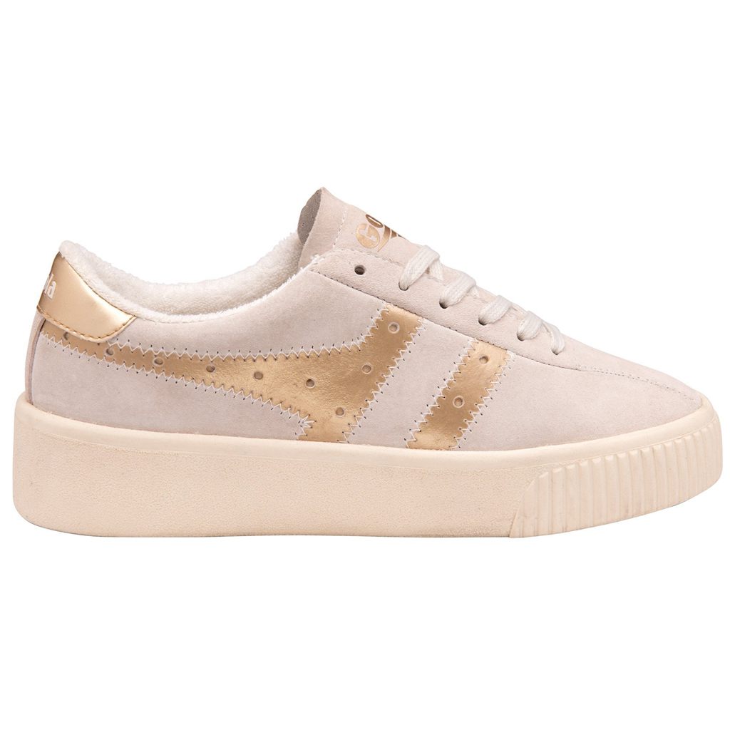 Gola’s Super Court Metallic sneaker for women features smooth reverse seams, punch detailing to the side panels and soft gold Gola wingflash branding which complements the off white suede upper perfectly. All nestled on an off white elevated cup sole, this is an uber feminine sneaker choice which will be a welcome asset to any woman’s wardrobe.