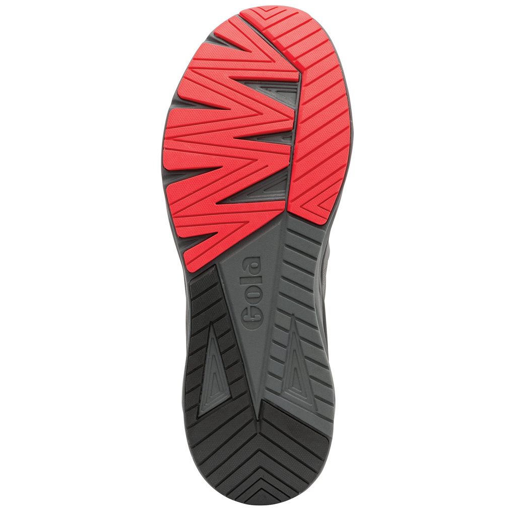 Fitness enthusiasts will love the Gola Performance Thunder sneaker designed specifically for running, as it offers support while providing a full range of movement. This men’s Gola Performance stylish sneaker features a breathable weave water resistant mesh upper in charcoal finished with a black trim and contrasting red laces. The moulded footbed complete with a KPU weld on the toe and facing offers increased durability, whilst the responsive lightweight phylon midsole offers comfort. The rubber sole with groove sections on the Thunder provides enhanced grip, perfect for that urban adventure!